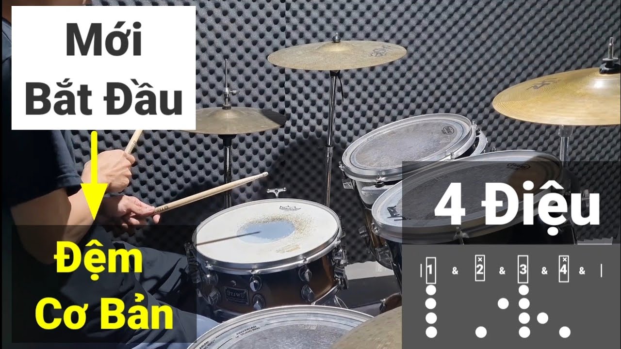 Dưới đây là các điệu trống cơ bản cũng như cách thực hành các điệu trống đó mà bạn cần nắm được trong quá trình học trống: